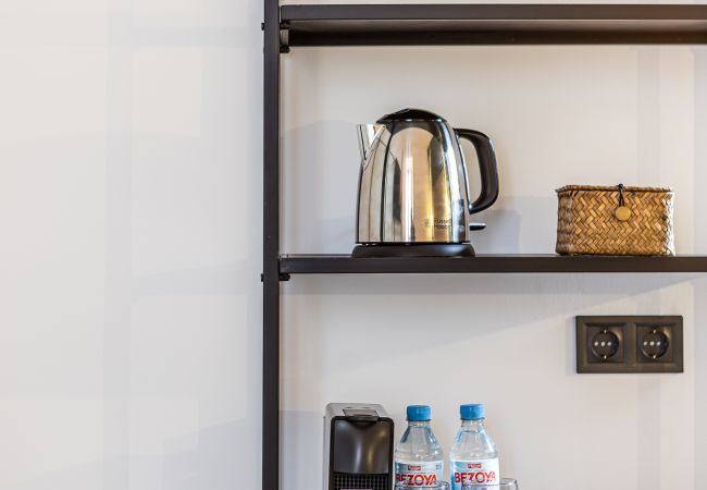 El apartamento cuenta con un dormitorio con una cama doble confortable, perfecto para una estancia individual o en pareja. Dispone de aire acondicionado y calefacción por bomba de calor para garantizar tu máximo confort en cualquier época del año. La cocina americana está completamente equipada con placa vitrocerámica, máquina de café y hervidor, ideal para preparar tus comidas y desayunos.