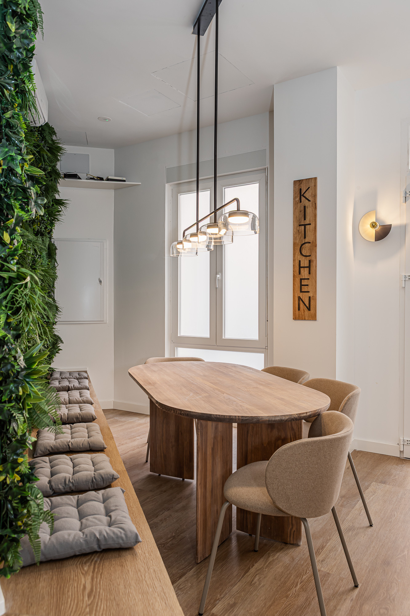 El edificio ofrece una cocina compartida totalmente equipada, un área de estar y una atmósfera tranquila — ideal para estancias cortas, viajes de negocios o alojamiento temporal en Madrid.