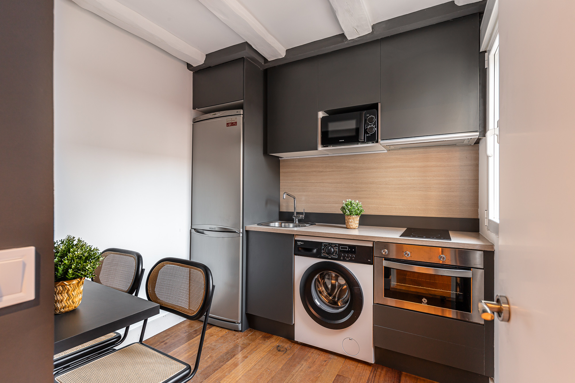 El apartamento en Madrid posee 1 dormitorio(s) y capacidad para 2 personas. Alojamiento de 40 m² amueblado con gusto y totalmente equipado. Se encuentra a 0 m del supermercado, 210 m del metro "Antón Martín (L1)", 850 m del metro "Sol (L1, L2, L3)", 850 m de la estación de tren "Sol (Cercanías C3,C4,C4a)", 1 km de la estación de tren "Estación de tren Puerta de Atocha", 7 km de la estación de tren "Estación de tren Chamartin", 22 km del aeropuerto internacional "Aeropuerto Madrid Barajas" y está ubicado en una zona con encanto y en el casco urbano. Dispone de ascensor, lavadora, secadora, plancha, acceso internet (wifi), secador, calefacción bomba de calor, aire acondicionado, 1 Televisor. La cocina americana, de vitrocerámica, está equipada con nevera, microondas, horno, congelador, lavavajillas, vajilla/cubertería, utensilios/cocina, cafetera, tostadora, hervidor de agua y exprimidor.
