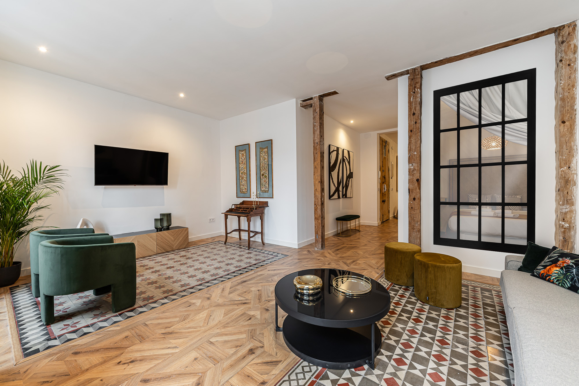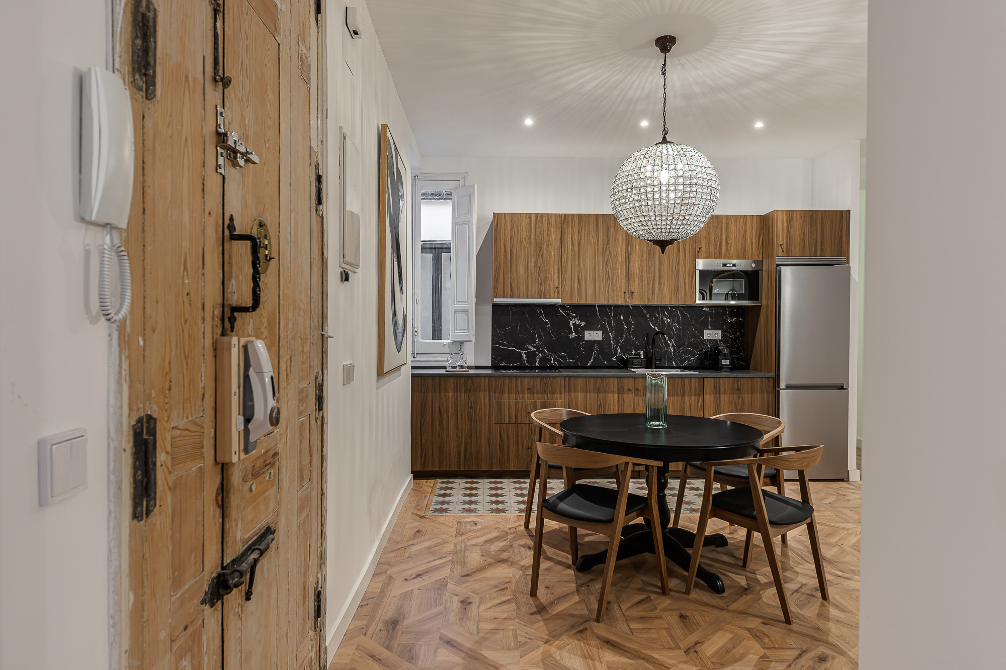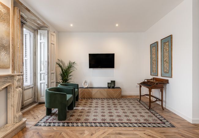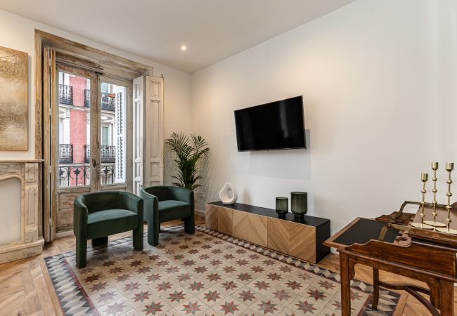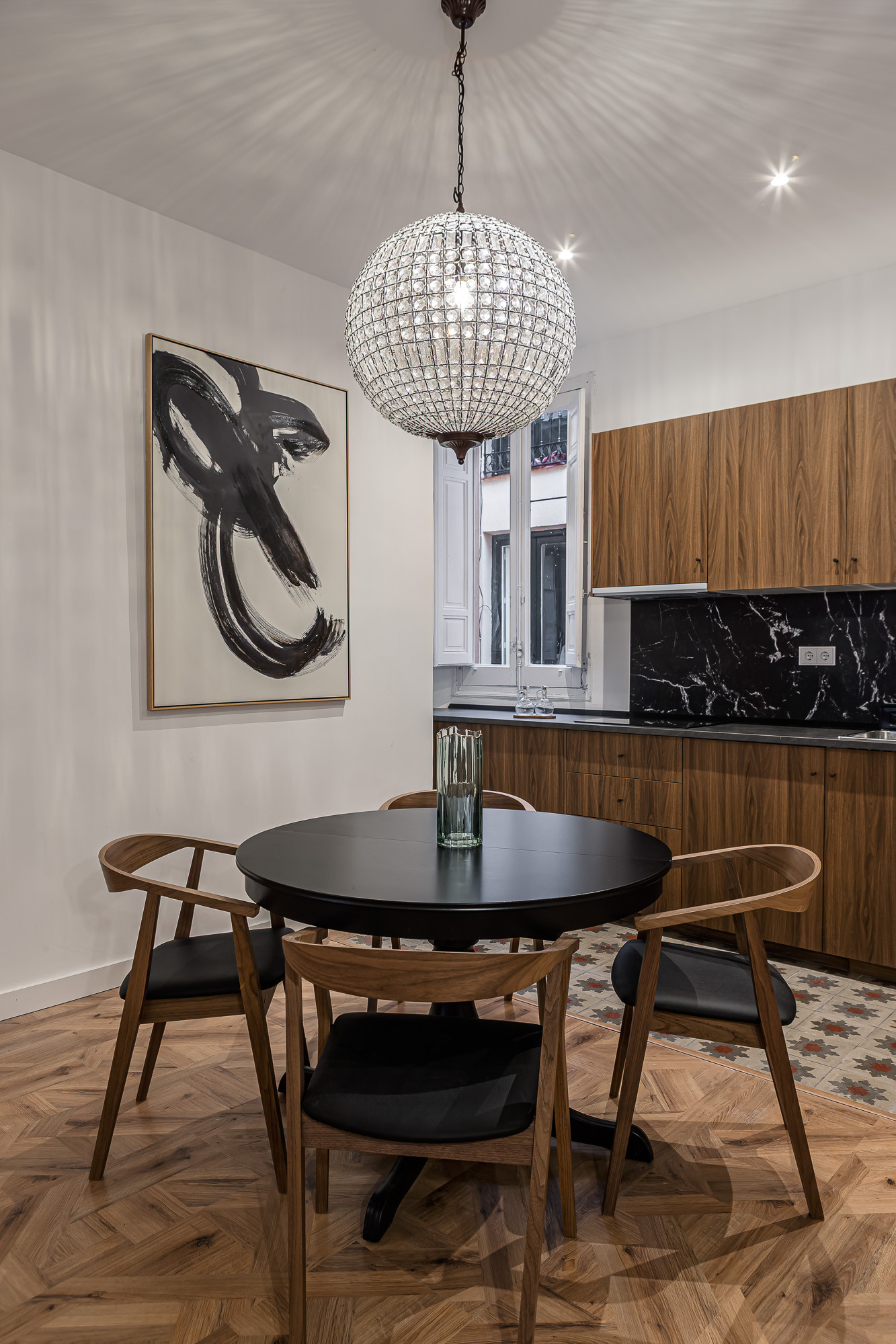 The apartment in Madrid has 5 bedroom(s) and capacity for 10 people. Accommodation of 170 m² furnished with taste and fully equipped. It is located 0 m from the supermarket, 300 m from the metro "La Latina (L5)", 350 m from the metro "Tirso de Molina (L1)", 3 km from the train station "Puerta de Atocha Train Station", 18 km from the train station "Chamartin Train Station", 22 km from the international airport "Madrid Barajas Airport" and is located in an ideal area for families and in the urban centre. It has a lift, washing machine, dryer, iron, internet access (wifi), hairdryer, heat pump heating, air conditioning, 1 Television. The American kitchen, with ceramic hob, is equipped with fridge, microwave, oven, freezer, dishwasher, crockery/cutlery, kitchen utensils, coffee maker, toaster, kettle and juicer.