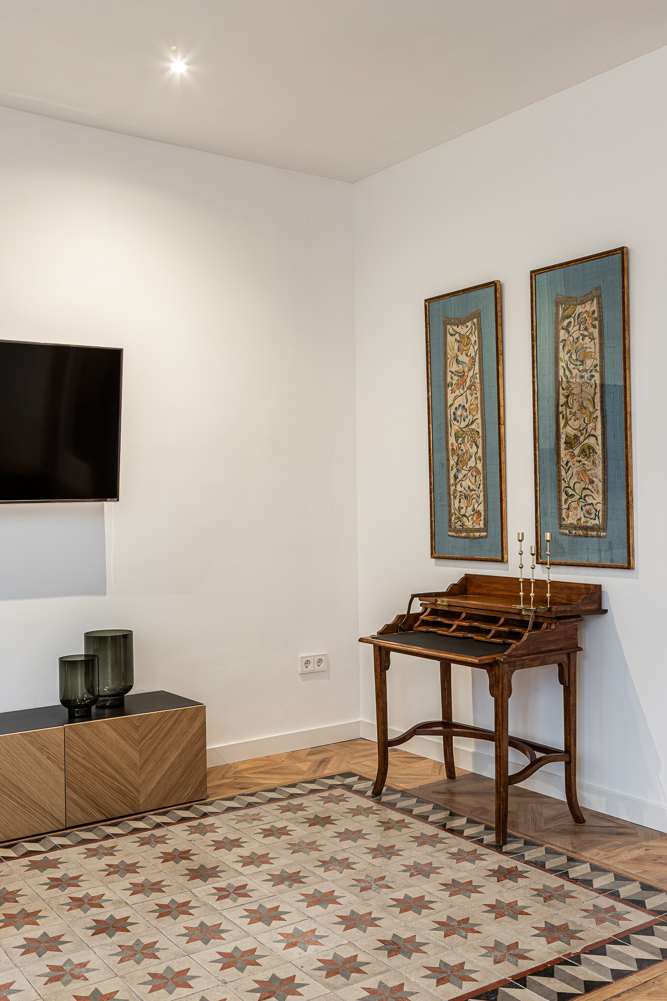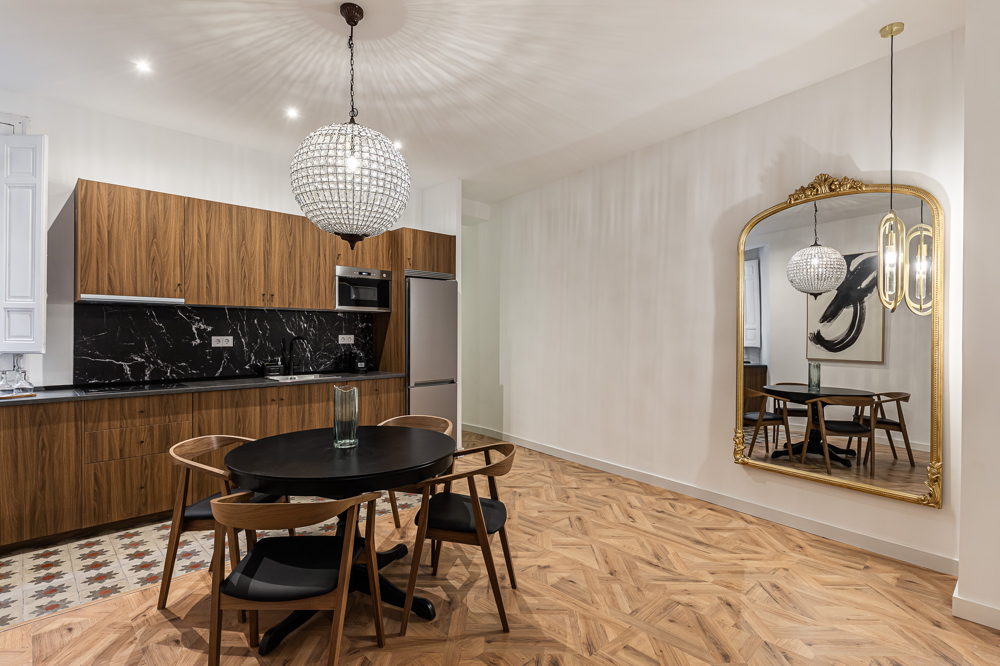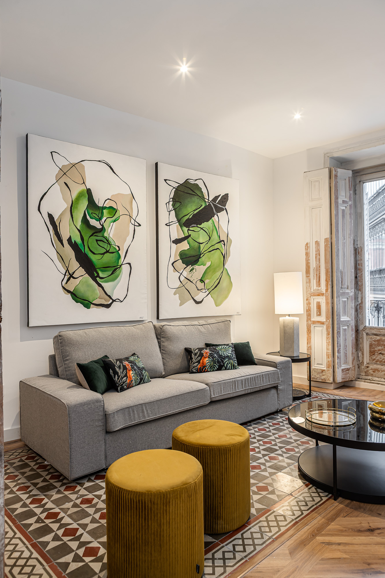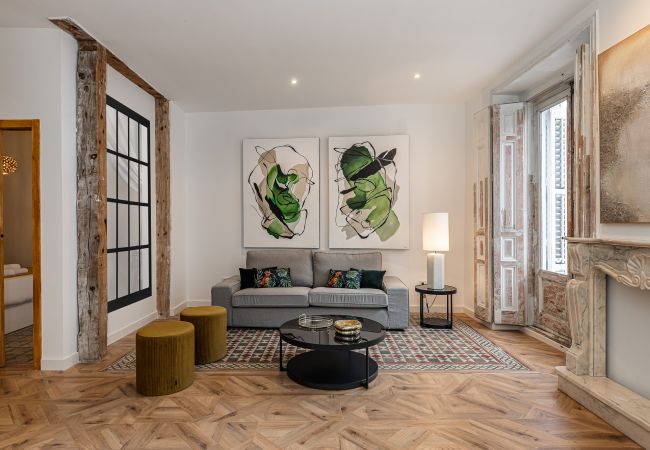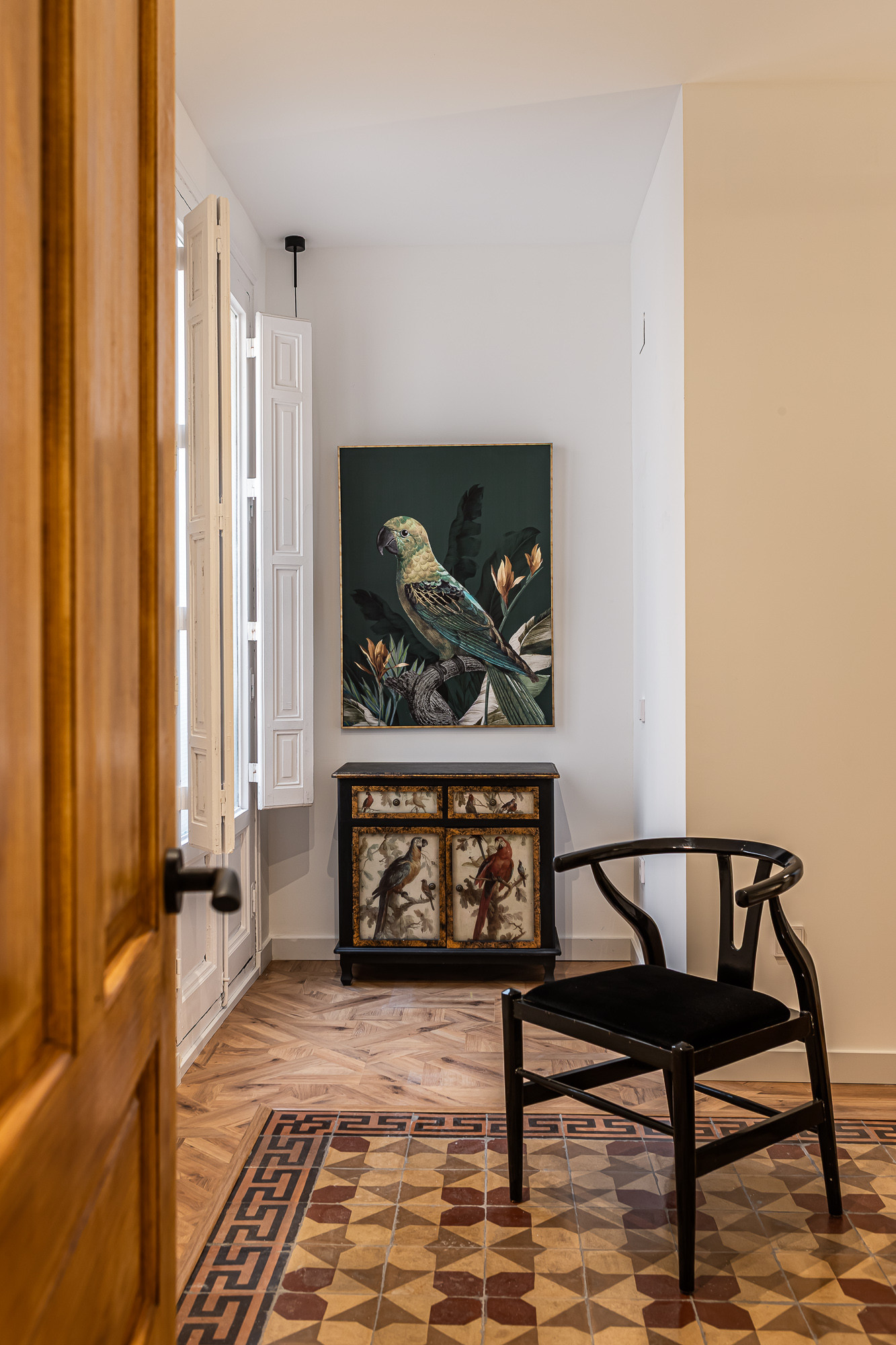 The apartment in Madrid has 5 bedroom(s) and capacity for 10 people. Accommodation of 170 m² furnished with taste and fully equipped. It is located 0 m from the supermarket, 300 m from the metro "La Latina (L5)", 350 m from the metro "Tirso de Molina (L1)", 3 km from the train station "Puerta de Atocha Train Station", 18 km from the train station "Chamartin Train Station", 22 km from the international airport "Madrid Barajas Airport" and is located in an ideal area for families and in the urban centre. It has a lift, washing machine, dryer, iron, internet access (wifi), hairdryer, heat pump heating, air conditioning, 1 Television. The American kitchen, with ceramic hob, is equipped with fridge, microwave, oven, freezer, dishwasher, crockery/cutlery, kitchen utensils, coffee maker, toaster, kettle and juicer.