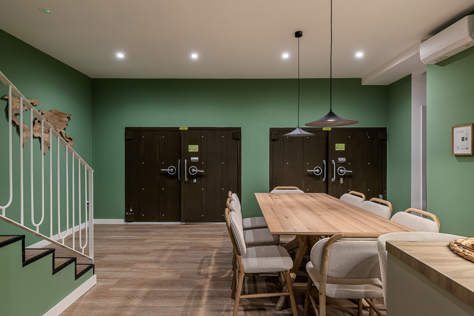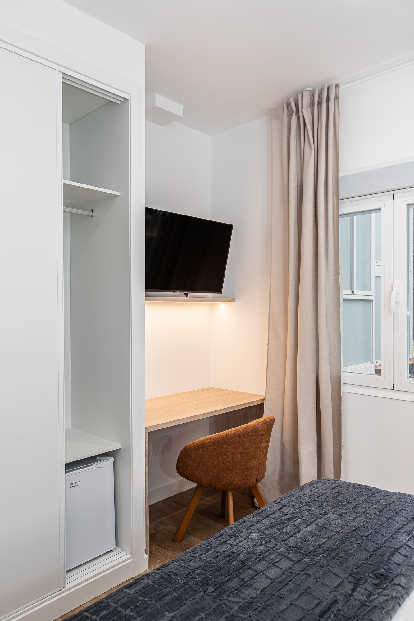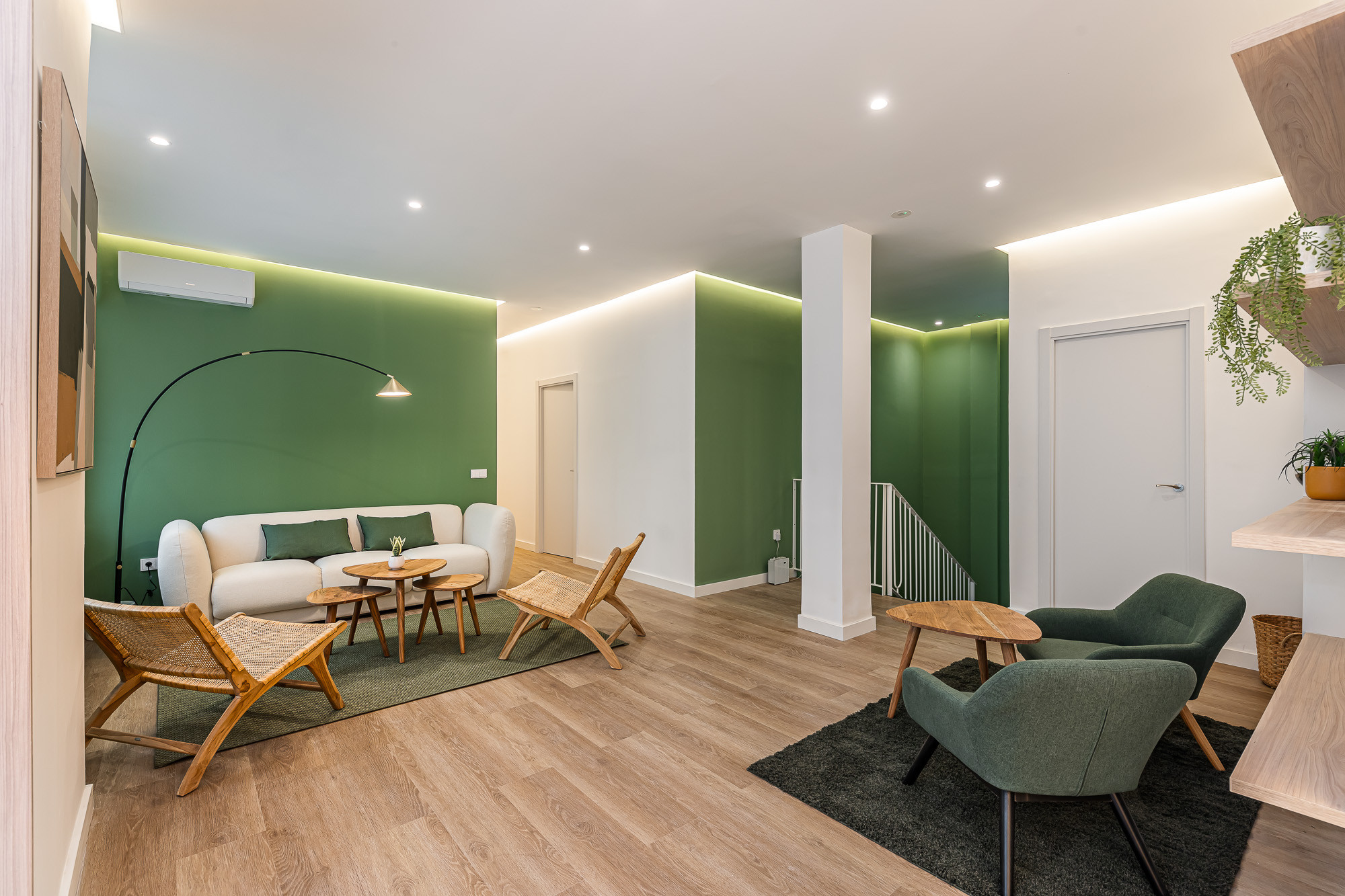 Private double rooms in a boutique coliving space located just 100 metres from Plaza de Olavide, in the heart of Madrid (Chamberí). Each room features a private bathroom, double bed, Smart TV, mini fridge, Nespresso coffee machine, desk, spacious wardrobe and high-speed WiFi.