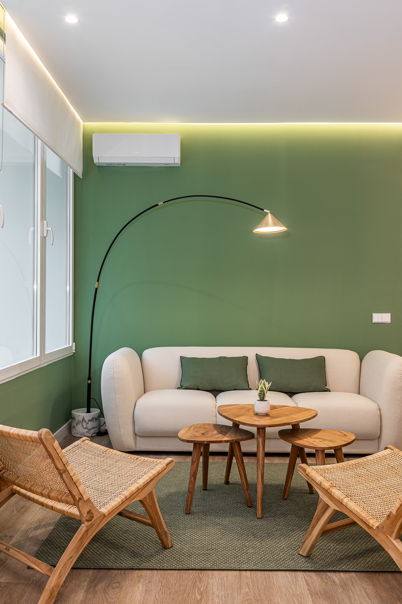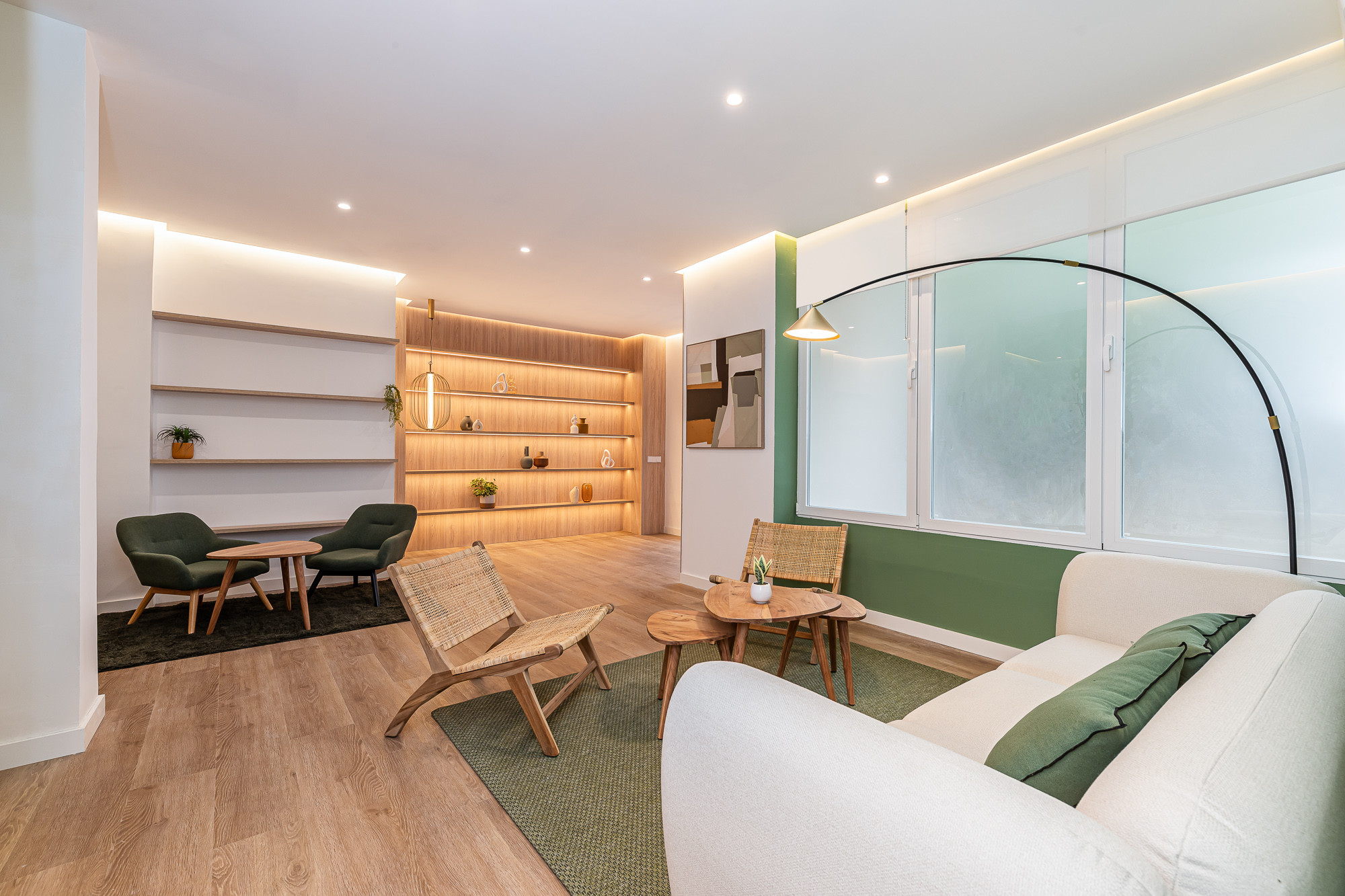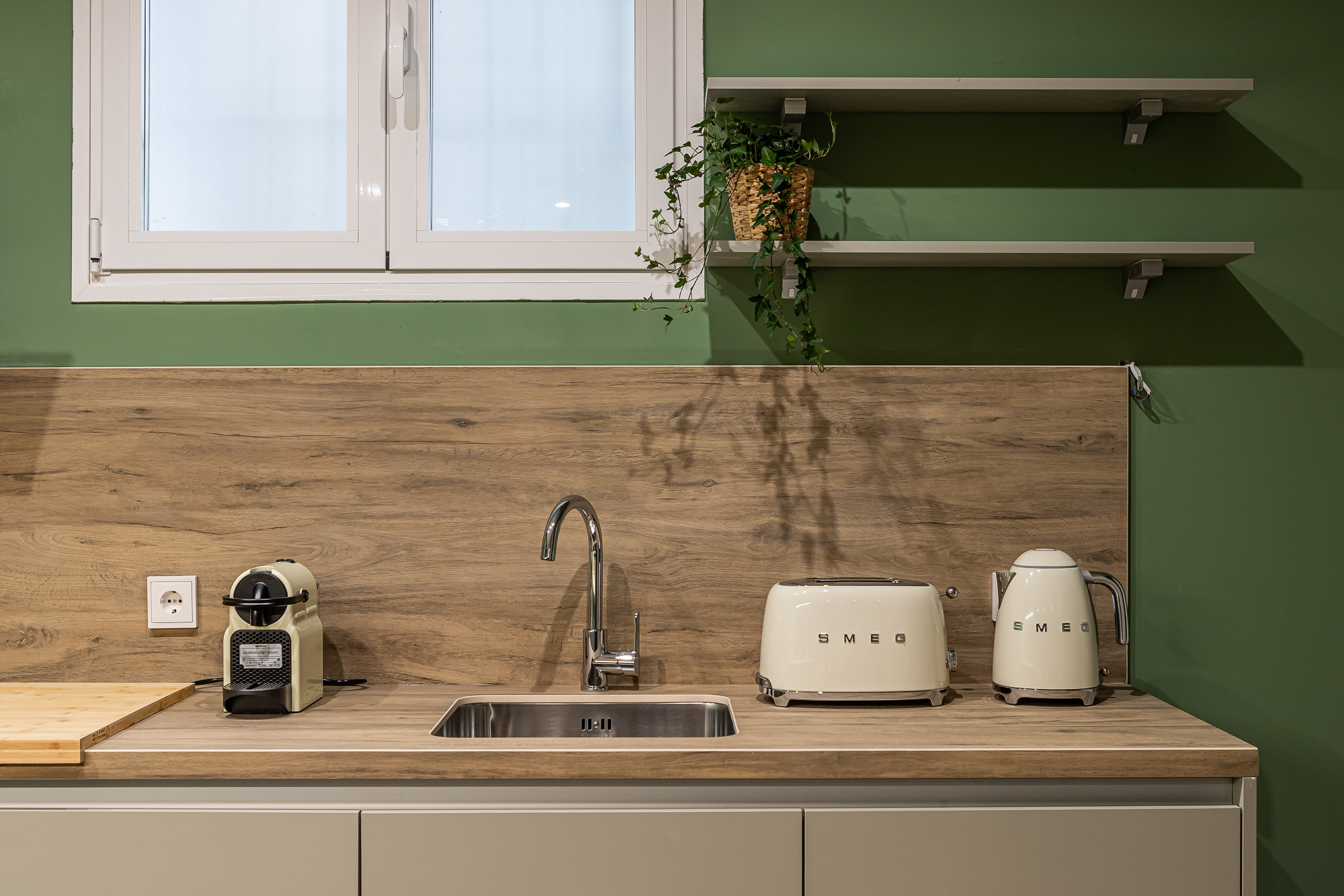 Private double rooms in a boutique coliving space located just 100 metres from Plaza de Olavide, in the heart of Madrid (Chamberí). Each room features a private bathroom, double bed, Smart TV, mini fridge, Nespresso coffee machine, desk, spacious wardrobe and high-speed WiFi.