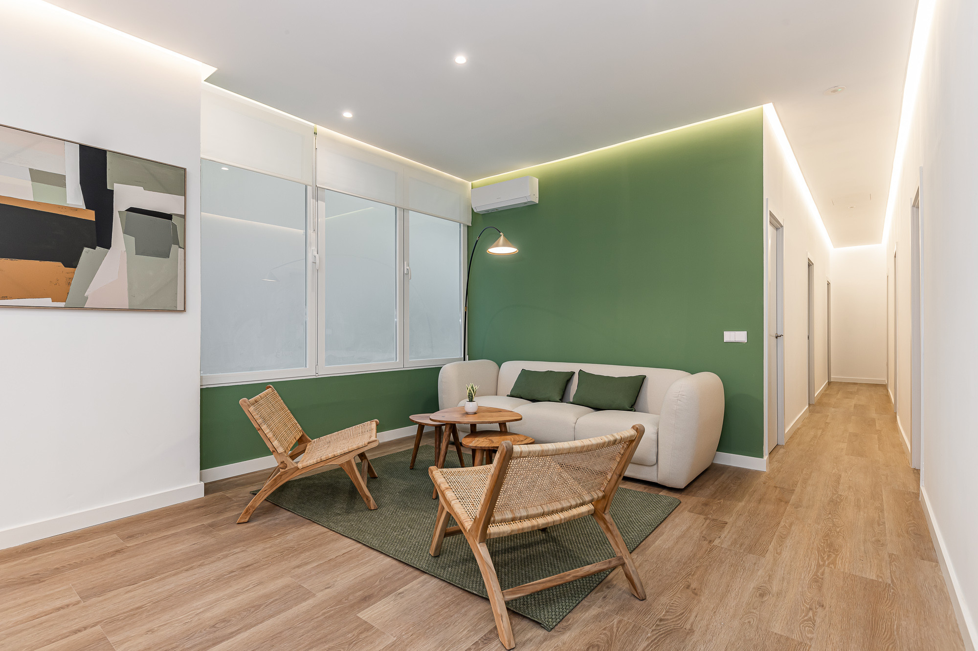 Private double rooms in a boutique coliving space located just 100 meters from Plaza de Olavide, in the heart of Madrid (Chamberí). Each room features a private bathroom, double bed, Smart TV, mini fridge, Nespresso coffee machine, work desk, spacious wardrobe, and high-speed WiFi.