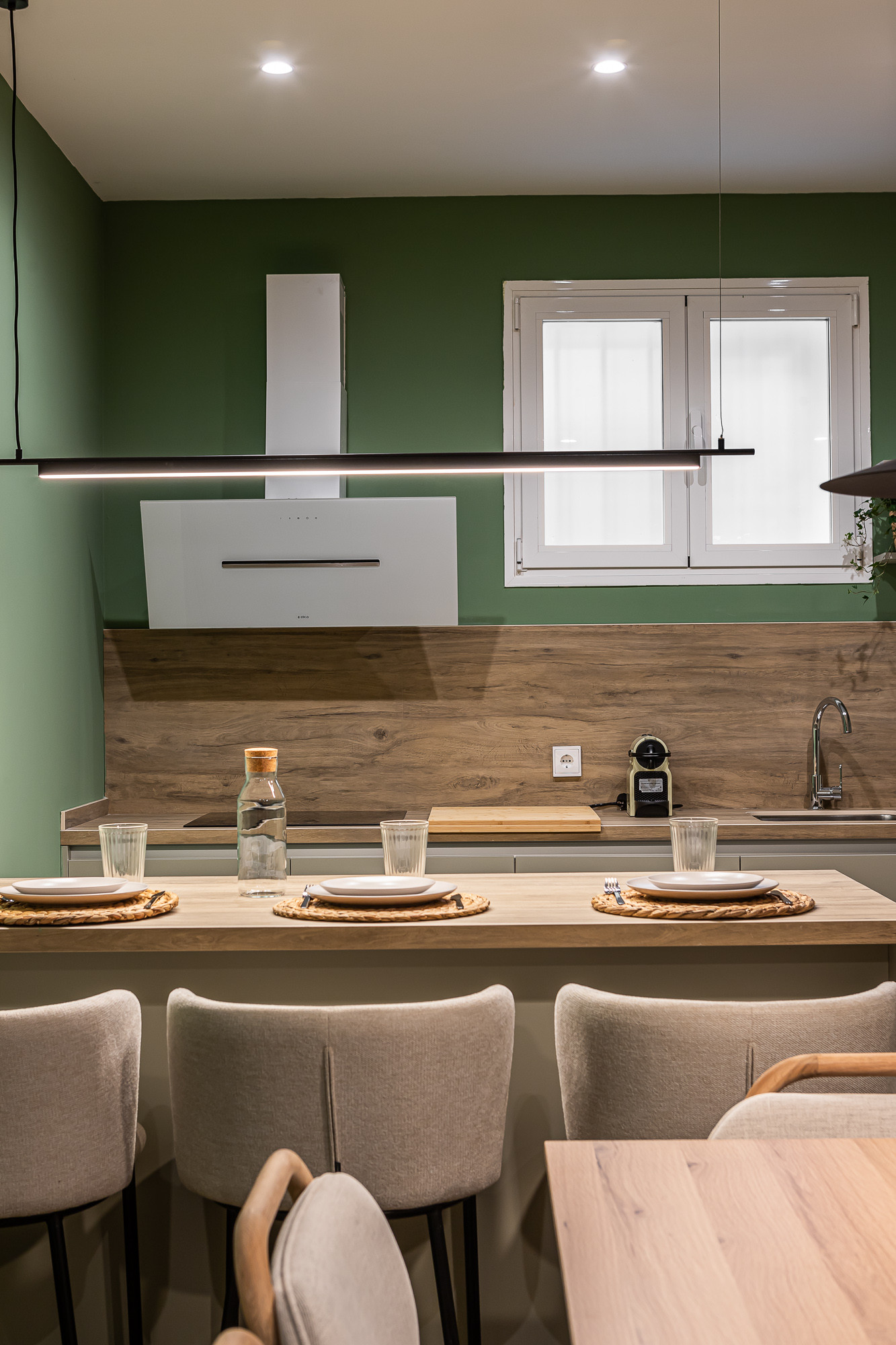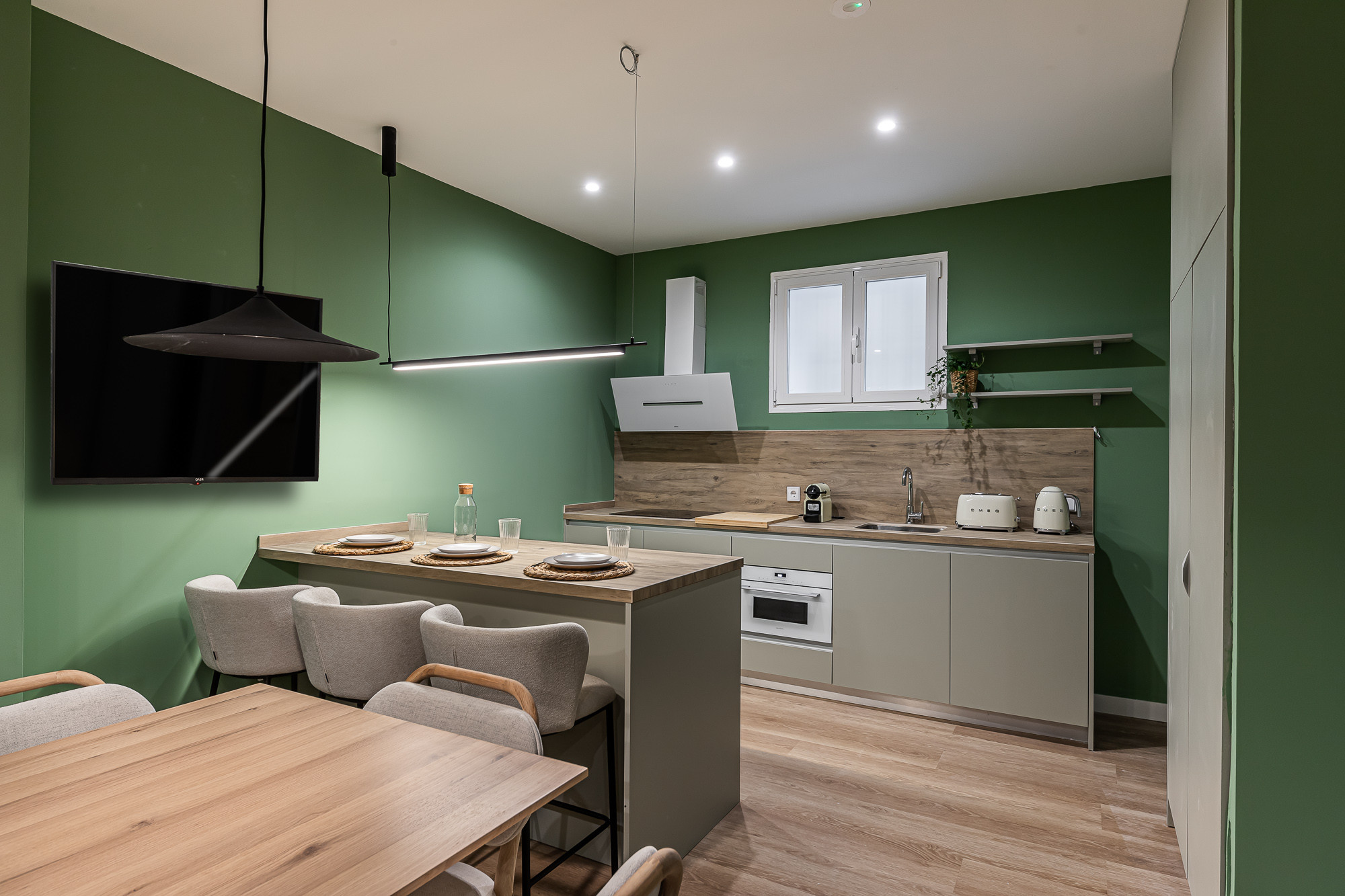 The building offers a fully equipped shared kitchen, a living area and a tranquil atmosphere — ideal for short stays, business trips or temporary accommodation in Madrid.
