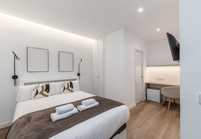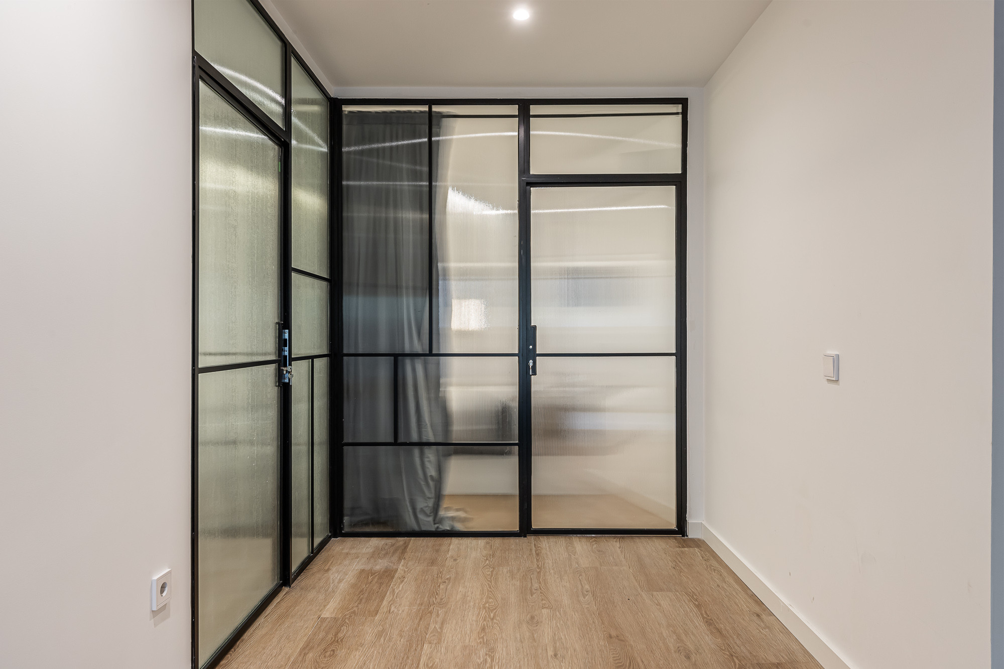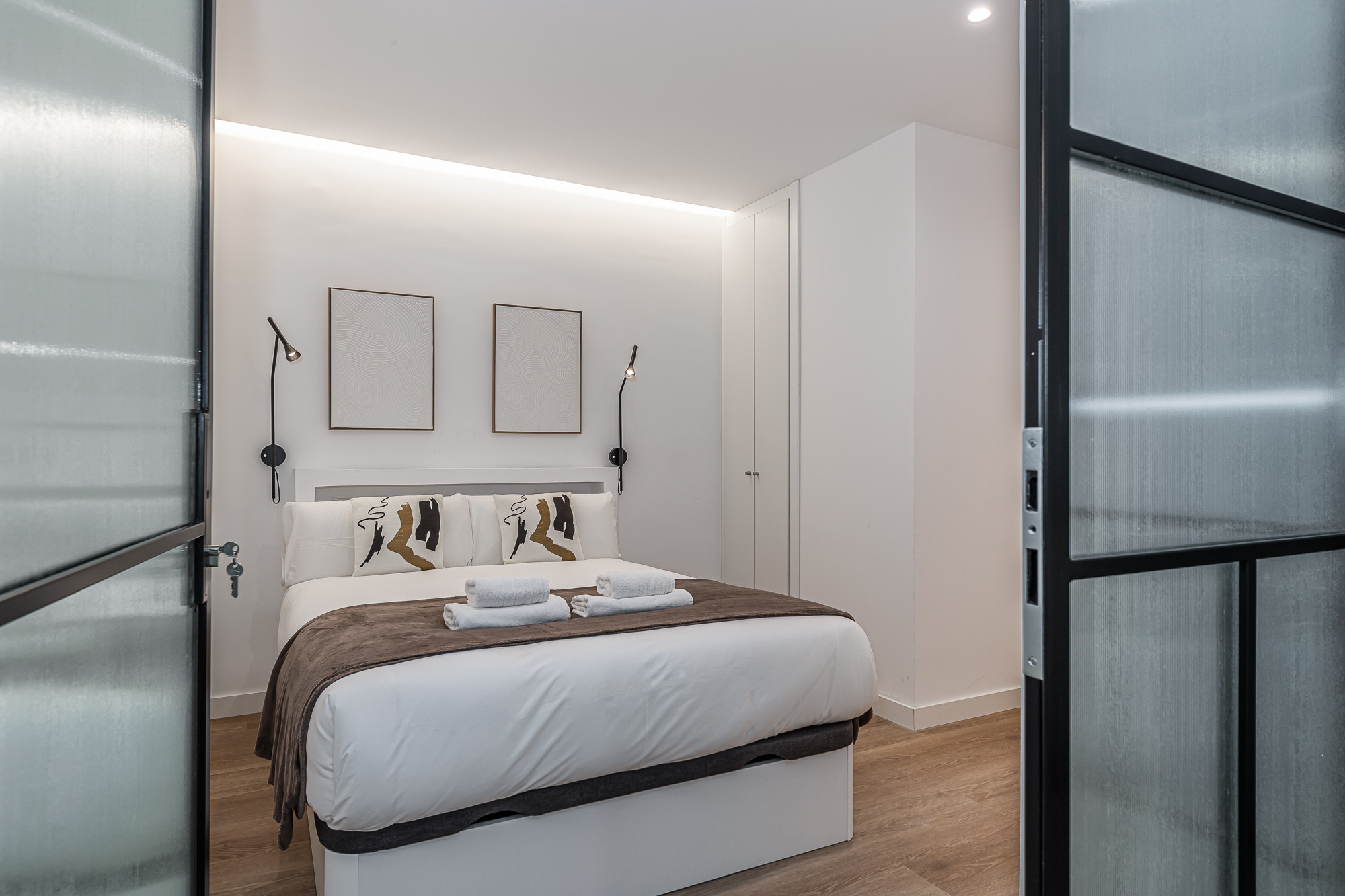 Private double rooms in a boutique coliving space located just 100 metres from Plaza de Olavide, in the heart of Madrid (Chamberí). Each room features a private bathroom, double bed, Smart TV, mini fridge, Nespresso coffee machine, desk, spacious wardrobe and high-speed WiFi.