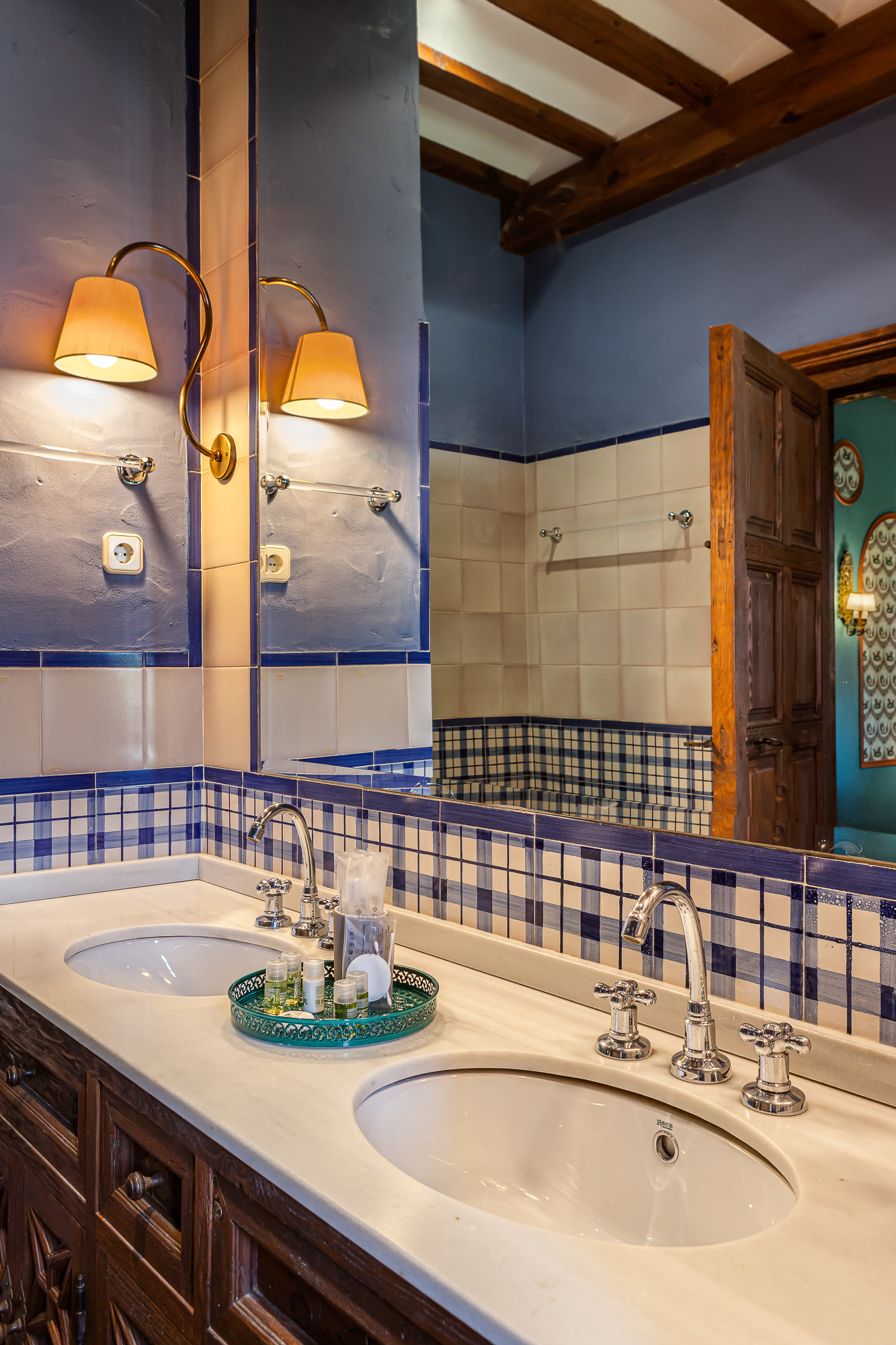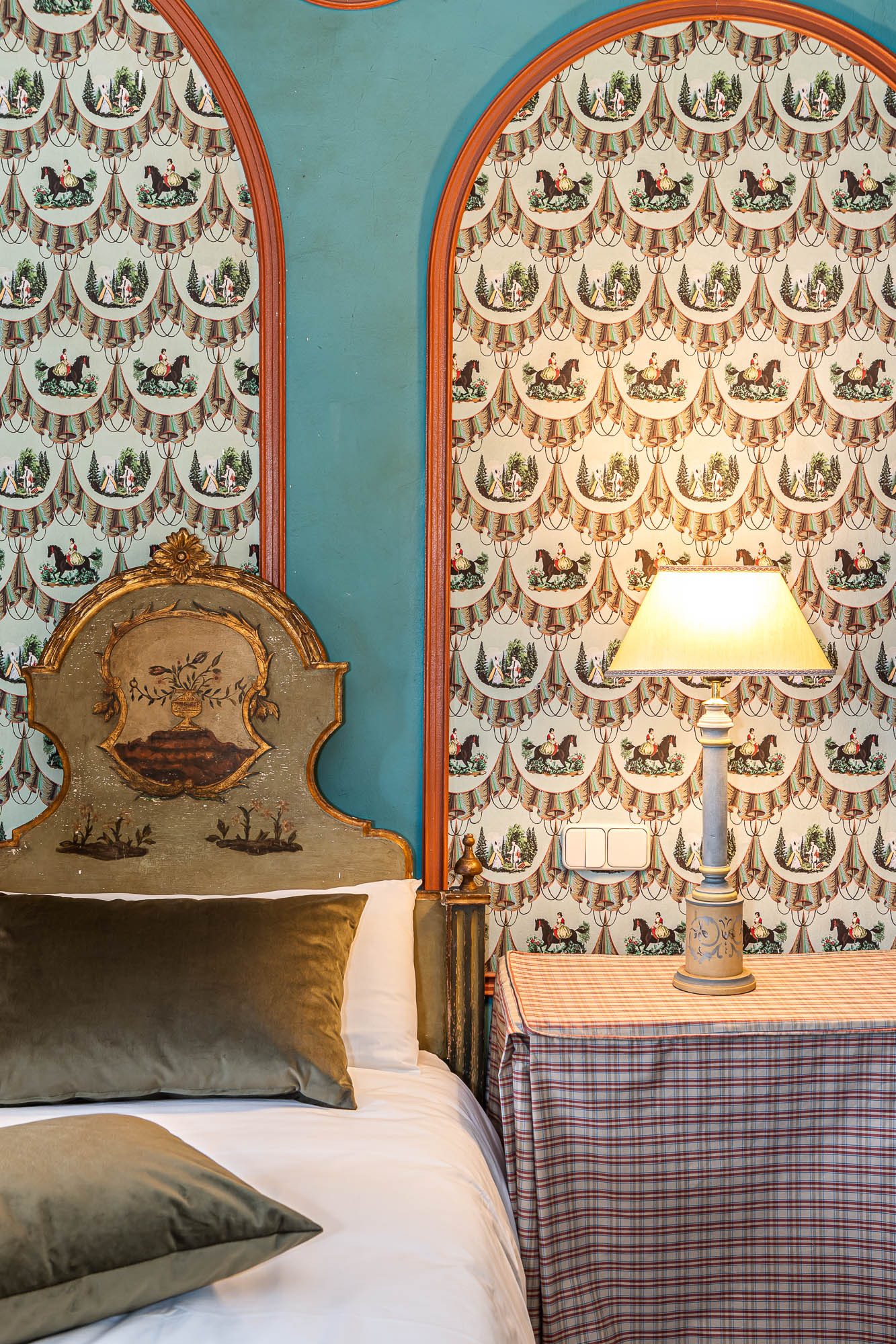 The hotel’s rooms are designed to provide comfort and tranquility. Each one is decorated in a style that combines antiques with modern touches, featuring comfortable beds, high-quality linens, and details that reflect the local heritage. Furniture pieces such as carved wooden desks and vintage wardrobes add a personal and inviting charm. Many of the windows overlook the olive groves, allowing natural light to flood the space.